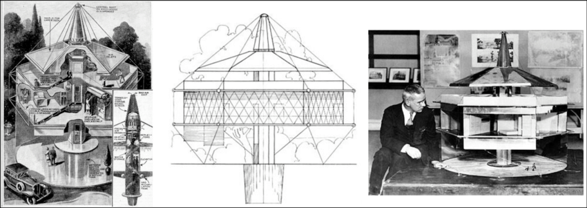 One of his lesser-known projects, the Dymaxion House, encapsulated these ideas. Designed to be mass-produced, shipped anywhere, and installed on any site, the Dymaxion House sat elevated on a central column that housed all the mechanical systems. Living spaces wrapped around this core, offering panoramic views while barely touching the ground. It was a vision of a future where dwellings could appear anywhere—light, efficient, and environmentally considerate.